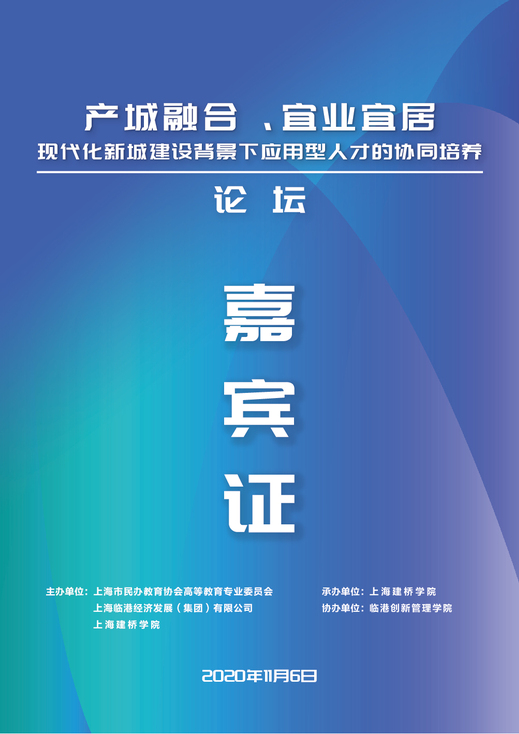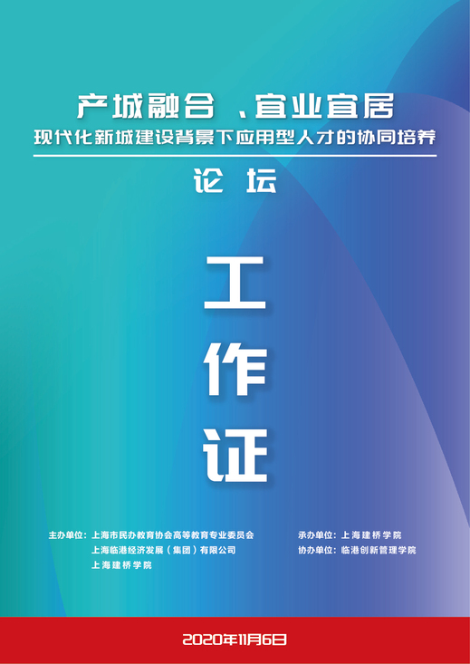 上图为“产城融合、宜业宜居 现代化新城建设背景下应用型人才的协同培养论坛”工作证